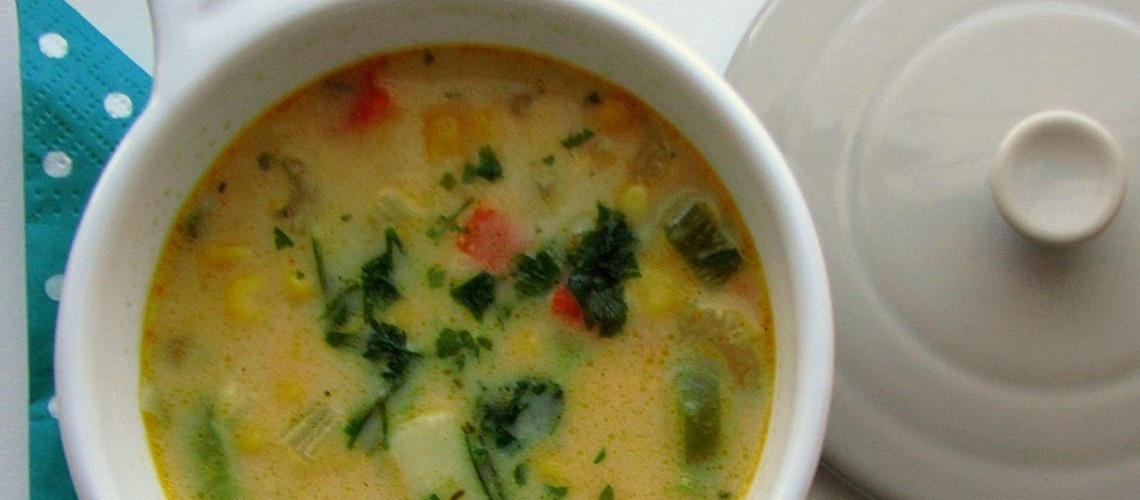 Jeśli znudziły się Wam klasyczne zupy, warto sięgnąć po ten chowder. Z definicji, to przede wszystkim zupa na bazie ryby i owoców morza/małży tzw. clam chowder. Są jednak różne odmiany, tak jak ta wersja wegetariańska z samymi warzywami z kukurydzianą podstawą. Świetnie smakuje posypana serem oraz z dodatkiem chrupiących nachos.