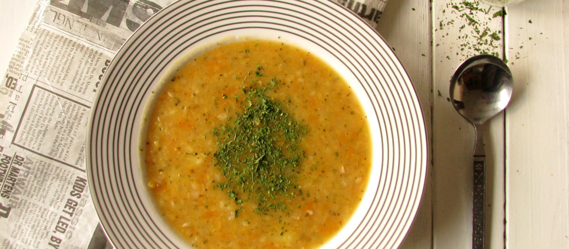 Grochówka wegetariańska – to kolejny jesienny klasyk! Gęsta, gorąca z wędzonym aromatem, który uzyskamy używając wędzonej papryki. Grochu nie trzeba namaczać. Wystarczy, że pogotujemy go około 45 minut. Po godzinie możemy cieszyć się pyszną, rozgrzewającą zupą, bez dodatku mięsa.