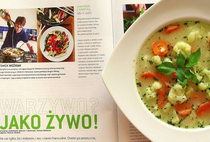 W naszym domu uwielbiamy zupy! Nieważne, czy jest upał, czy za oknami trzaska mróz. Na zupę zawsze mamy ochotę! Ponadto roboty z taką zupą niewiele i łatwo ją przyrządzić nawet po bardzo ciężkim dniu w pracy. Sądząc po statystykach na moim blogu, Wy również bardzo lubicie zupy! Dlatego wrzucam przepis na tę bardzo szybką i prostą kalafiorówkę. Świetne są tzw. śmieciówki – zawsze jest coś w lodówce z czego zupę można zrobić. Klasykami gatunku też nie gardzimy: pomidorówka, ogórkowa, szczawiówka! Wszystkie pojawiają się regularnie na naszym stole. Gdy lato w pełni uwielbiam zupy jarzynowe z przewagą jakiegoś jednego warzywa – tym razem padło na kalafiora, który już od kilku dni zalegał w lodówce. Jak zwykle u nas – zupa jest bezmięsna, na bulionie warzywnym lub na biokostce.